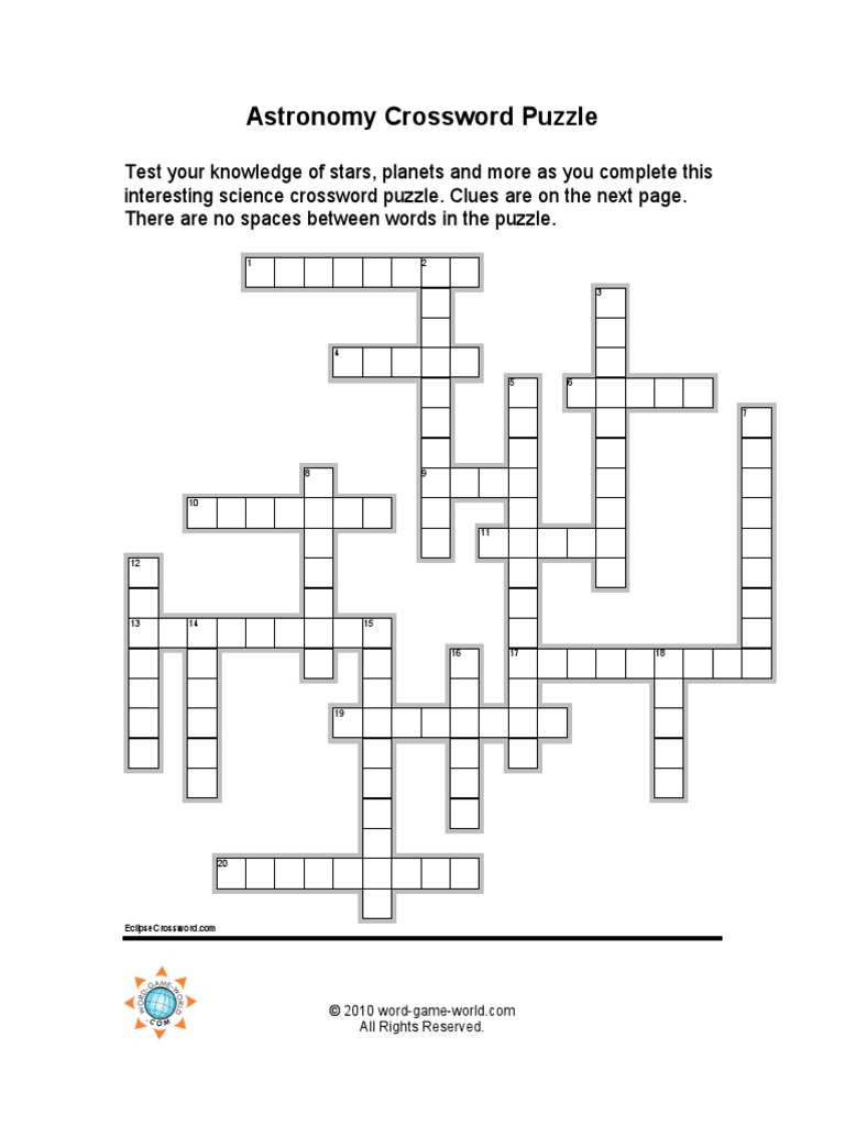 Free printable science crossword puzzles. These printable science crossword puzzles cover science vocabulary, and the solar system. 1st grade science vocabulary crossword puzzles. You can also browse science (general) word searches or make your own science (general) word search , crossword , fill in the blank , word scramble , matching , bingo , handwriting exercise , open response worksheet, or flashcards. This crossword puzzle will demonstrate your knowledge of definitions and calculations relating to lewton's laws of motion at hand.